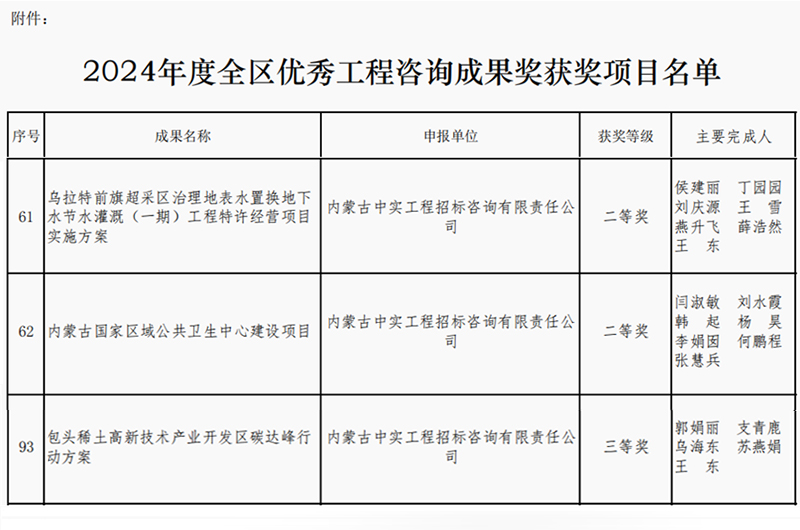 2025-04-1610281 次2025年4月16日,内蒙古工程咨询协会公布了2024年度优秀咨询成果奖获奖单位名单,我司取得两个二等奖和一个三等奖,我司专业能力和服务质量再次获得行业的认可。此次获奖,不仅体…